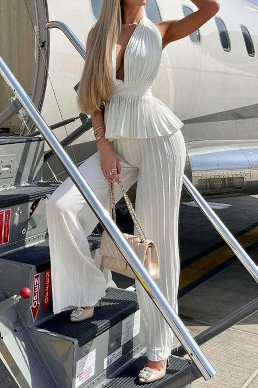 LP | Top senza maniche con scollo a V e vestibilità slim senza schienale Set di pantaloni a pieghe